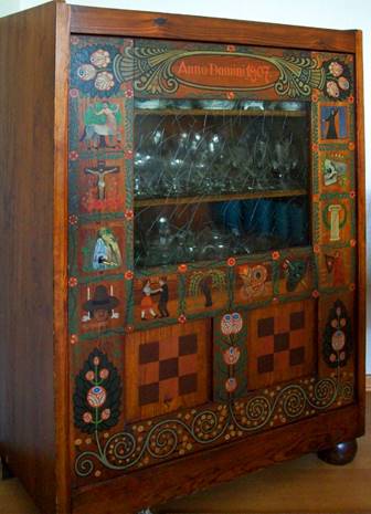 aufgetaucht. Ein in 1907 bemalter Vitrinenschrank